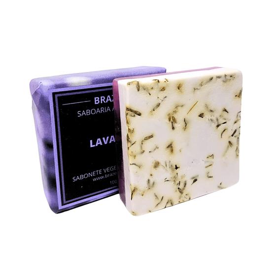 COMPOSIÇÃO: Base Glicerinada, Flor de Lavanda Desidratada, Extrato de Lavanda, Óleo Essencial de Lavanda, Óleo de Semente de uva, Manteiga de Karité, Corante Cosmético e Lauril.